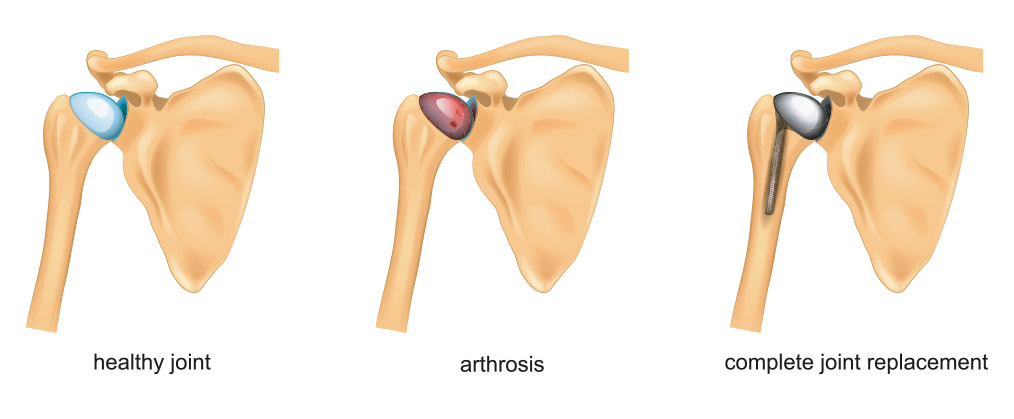 In shoulder replacement surgery, we remove the damaged parts of the shoulder and replace them with artificial components.